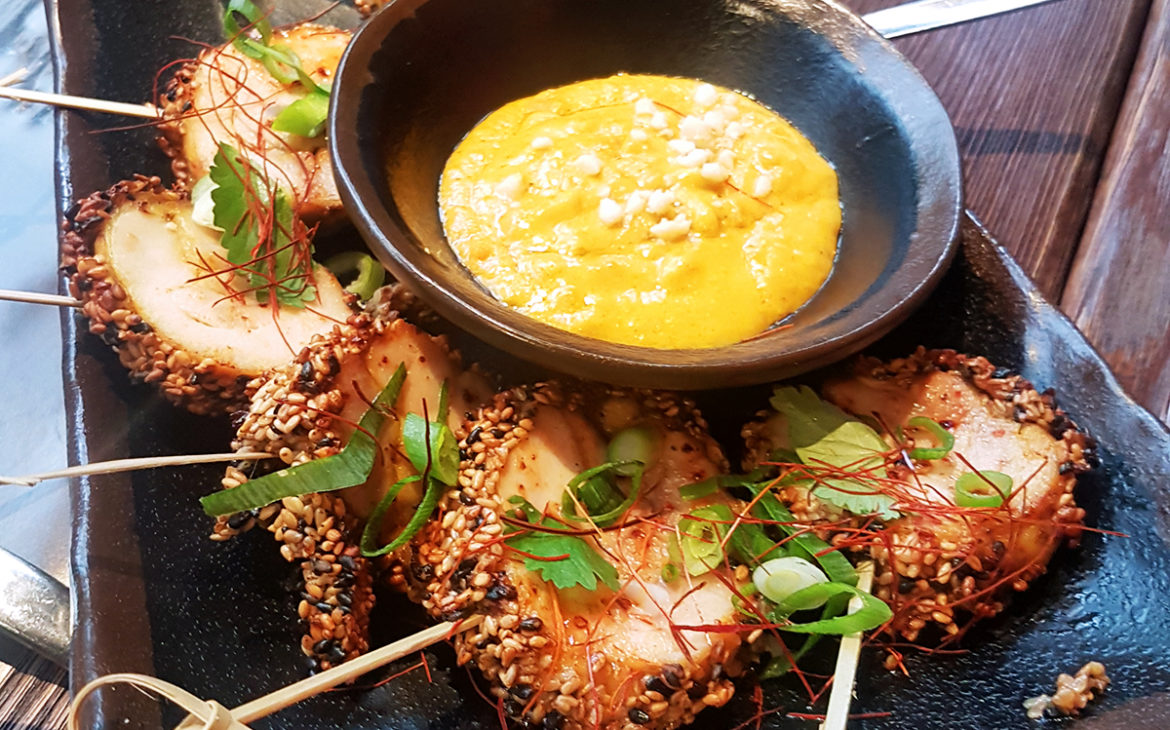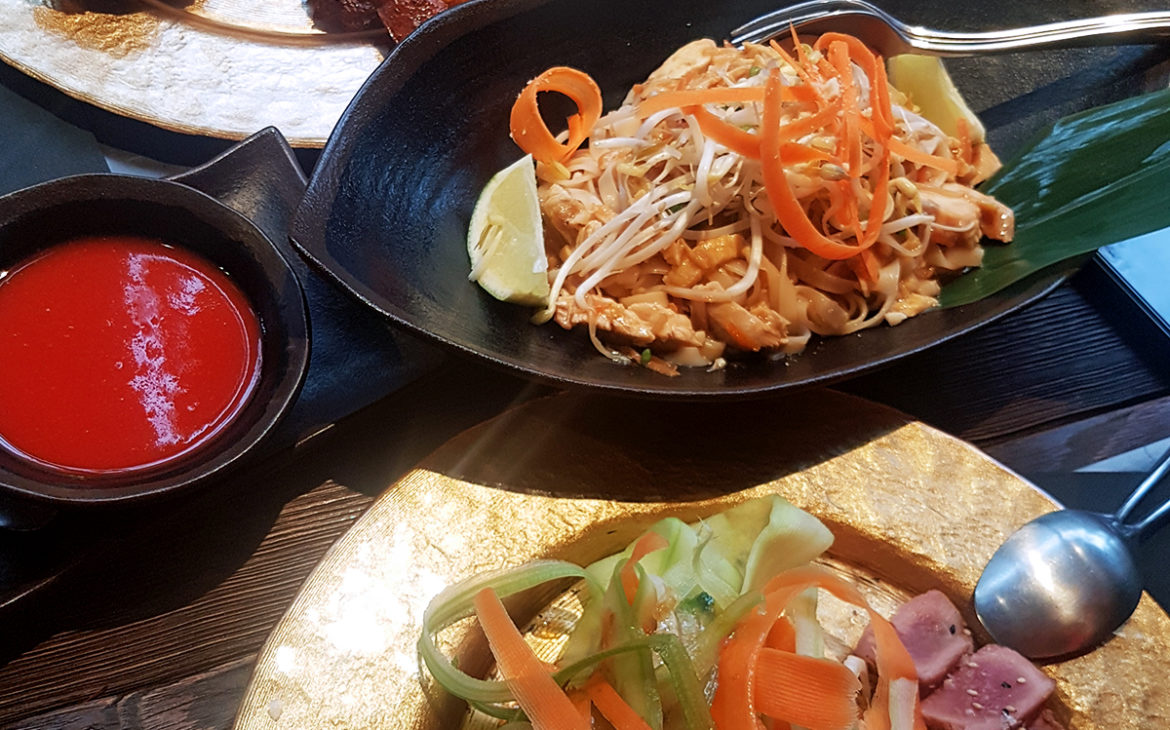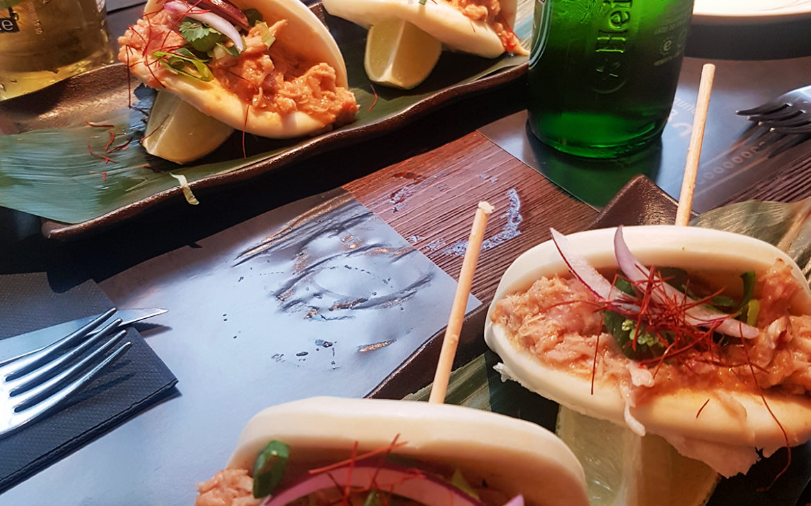 Es un restaurante canalla con grandes cristaleras que te transporta a Bangkok. Este tailandés tiene una carta llena de color y sabor y unos vistosos y ricos cocteles. Mis recomendaciones son el bibimbap de atún, el Panang Koong, el salmón kabayaki y el pato ped crob. Sus platos son abundantes por lo que se puede compartir super bien.