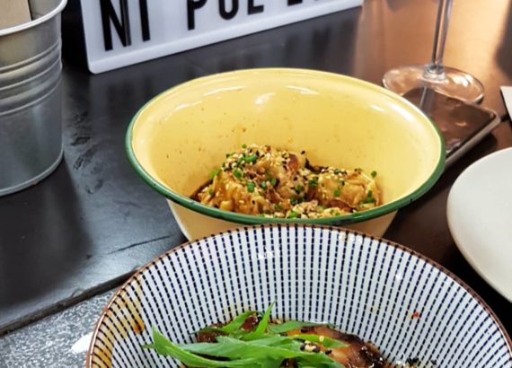 Dentro del mercado de Vallehermoso, podréis encontrar este pequeño puesto de influencia asiática con el que se te hará la boca agua. El lugar es un poco cutre y su presentación oficial es “ni gastro ni pollas”, pero siempre está lleno. Su carta es muy pequeña, pero está llena de sabor. No vas a saber cual elegir. Mis favoritos son las alitas camperas con salsa de chiles dulces, los dumplings de ternera, butifarra y kimchi, el curry thai de gambones y sus costillas korean bbq.