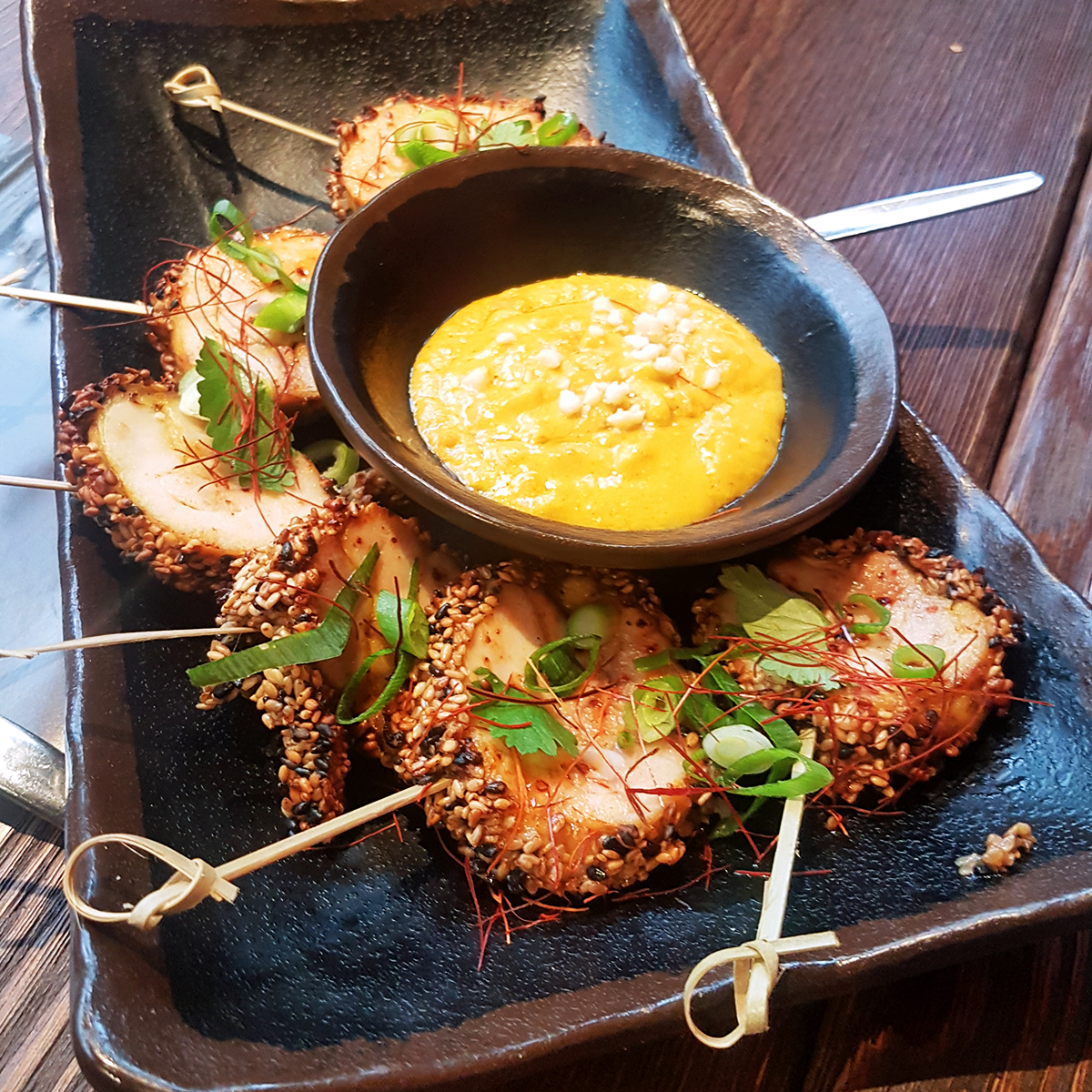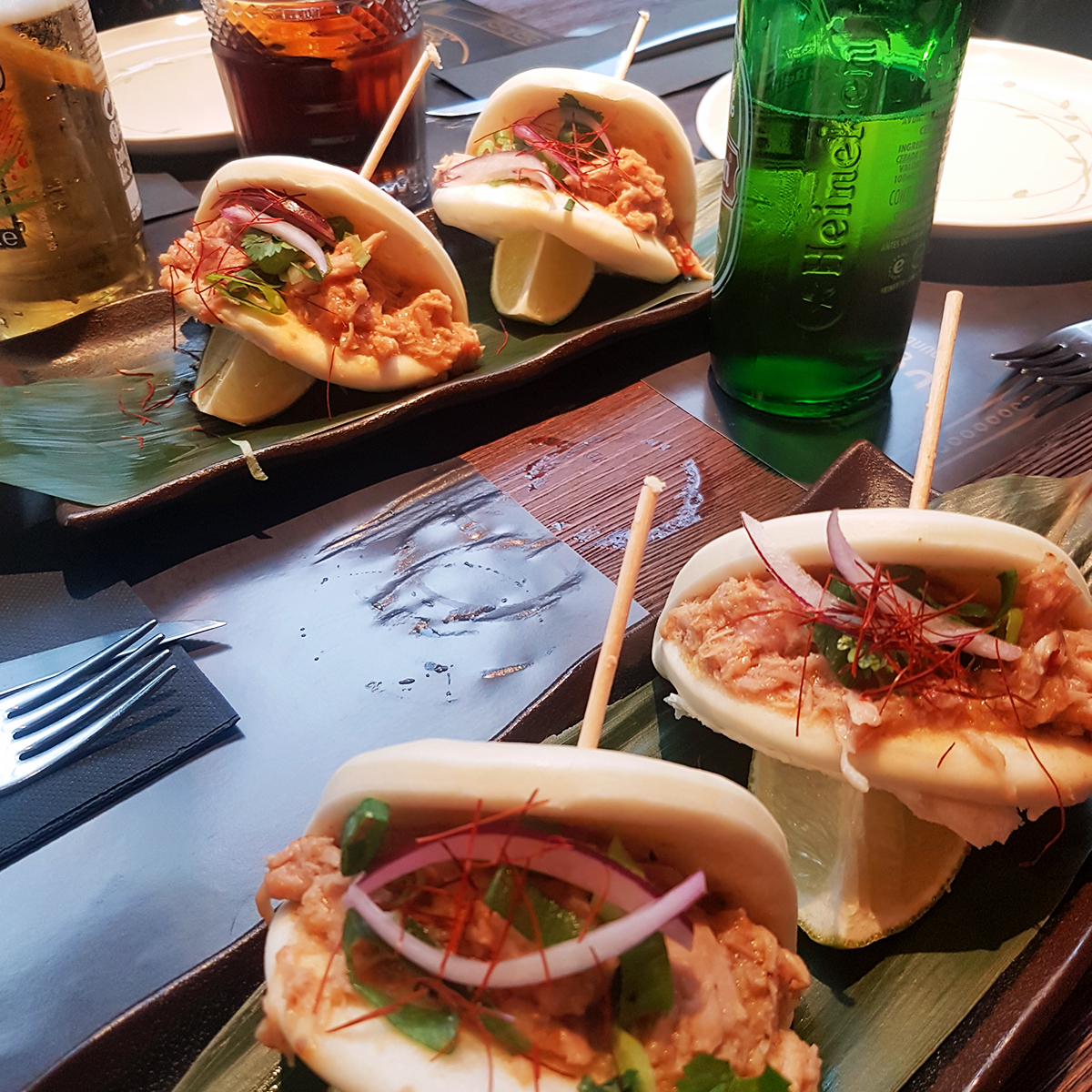 Dentro del mercado de Vallehermoso, podréis encontrar este pequeño puesto de influencia asiática con el que se te hará la boca agua. El lugar es un poco cutre y su presentación oficial es “ni gastro ni pollas”, pero siempre está lleno. Su carta es muy pequeña, pero está llena de sabor. No vas a saber cual elegir. Mis favoritos son las alitas camperas con salsa de chiles dulces, los dumplings de ternera, butifarra y kimchi, el curry thai de gambones y sus costillas korean bbq.