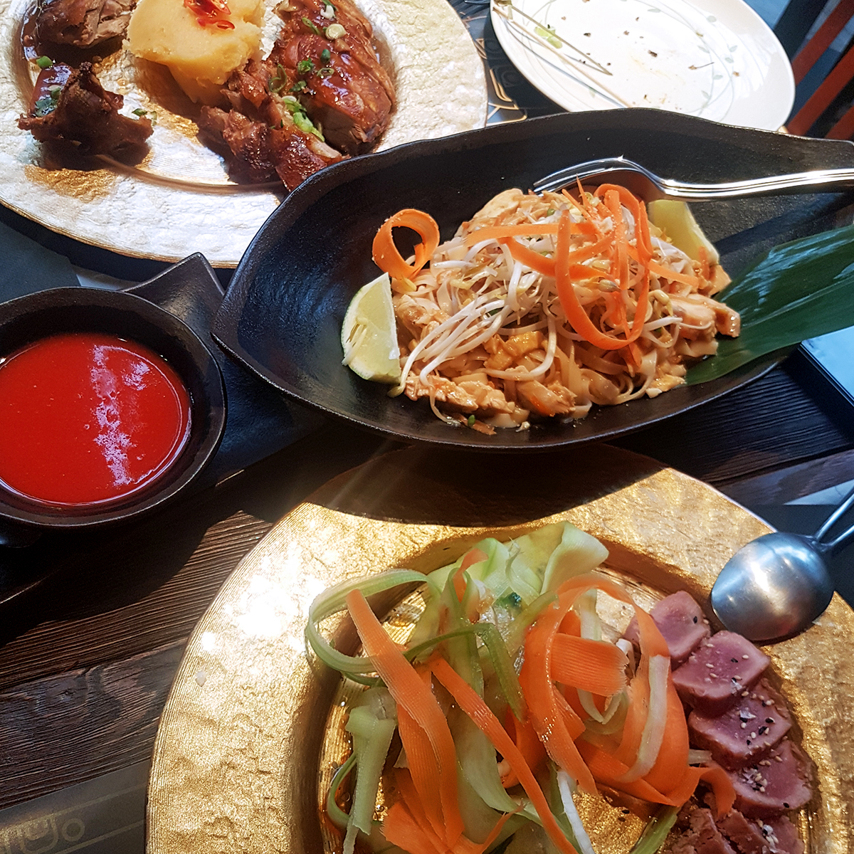 Es un restaurante canalla con grandes cristaleras que te transporta a Bangkok. Este tailandés tiene una carta llena de color y sabor y unos vistosos y ricos cocteles. Mis recomendaciones son el bibimbap de atún, el Panang Koong, el salmón kabayaki y el pato ped crob. Sus platos son abundantes por lo que se puede compartir super bien.